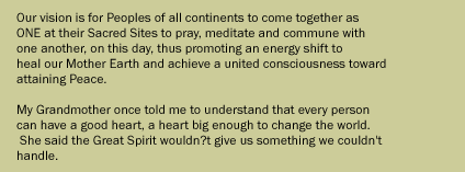 damit unsere “Verwandten”. Jeder kann in den “heiligen Kreis” des Medizinrades eintreten und die Position suchen, an der er sich am wohlsten fühlt.